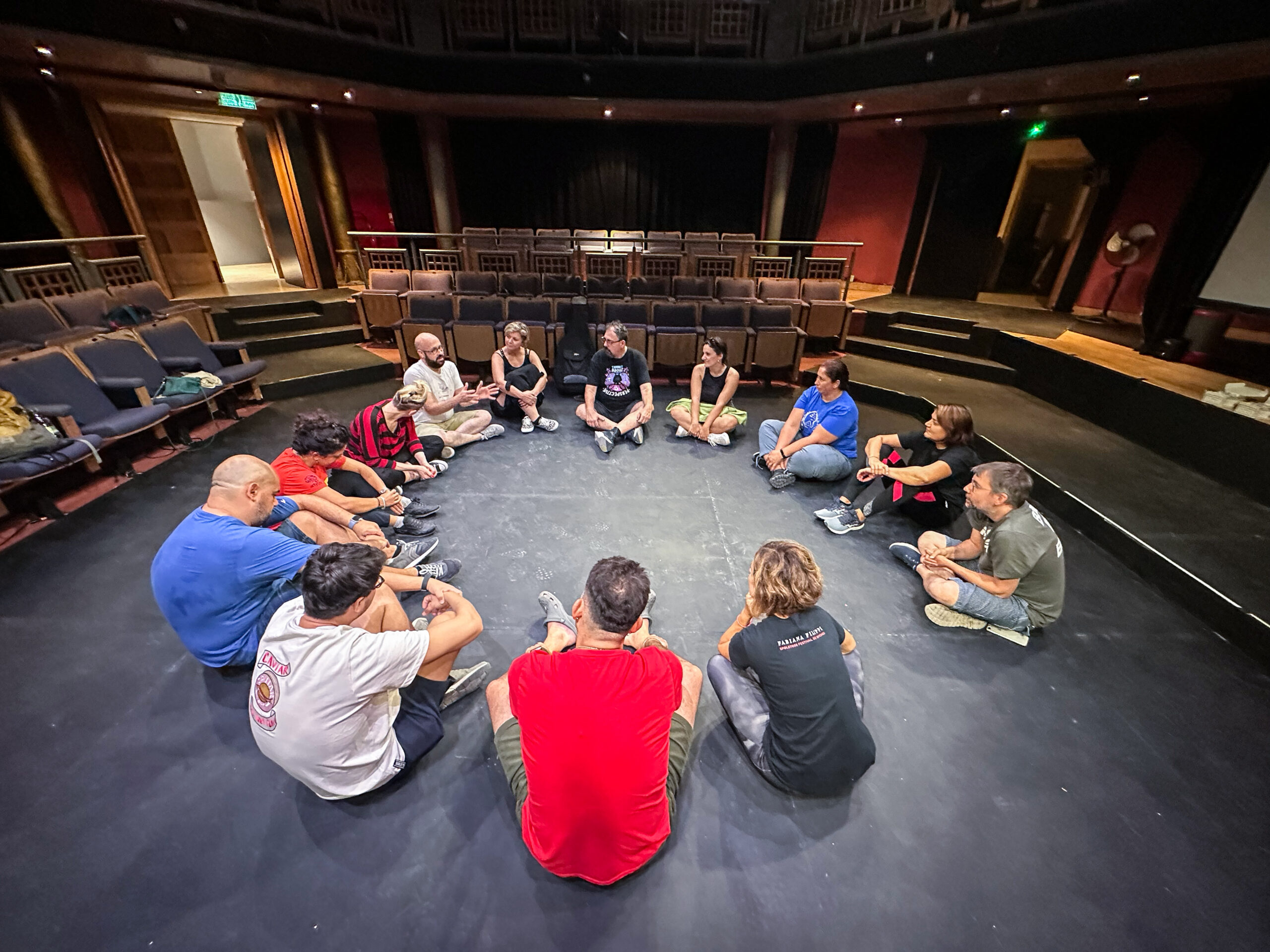The Sabir Collective is a diverse ensemble, where some speak Italian, others Turkish, French, Greek, Arabic, Spanish, or English. Yet, there is no single common language among them. Instead, they communicate through the universal language of improvisation—a space where cultural differences dissolve, and the magic of spontaneous storytelling takes center stage.